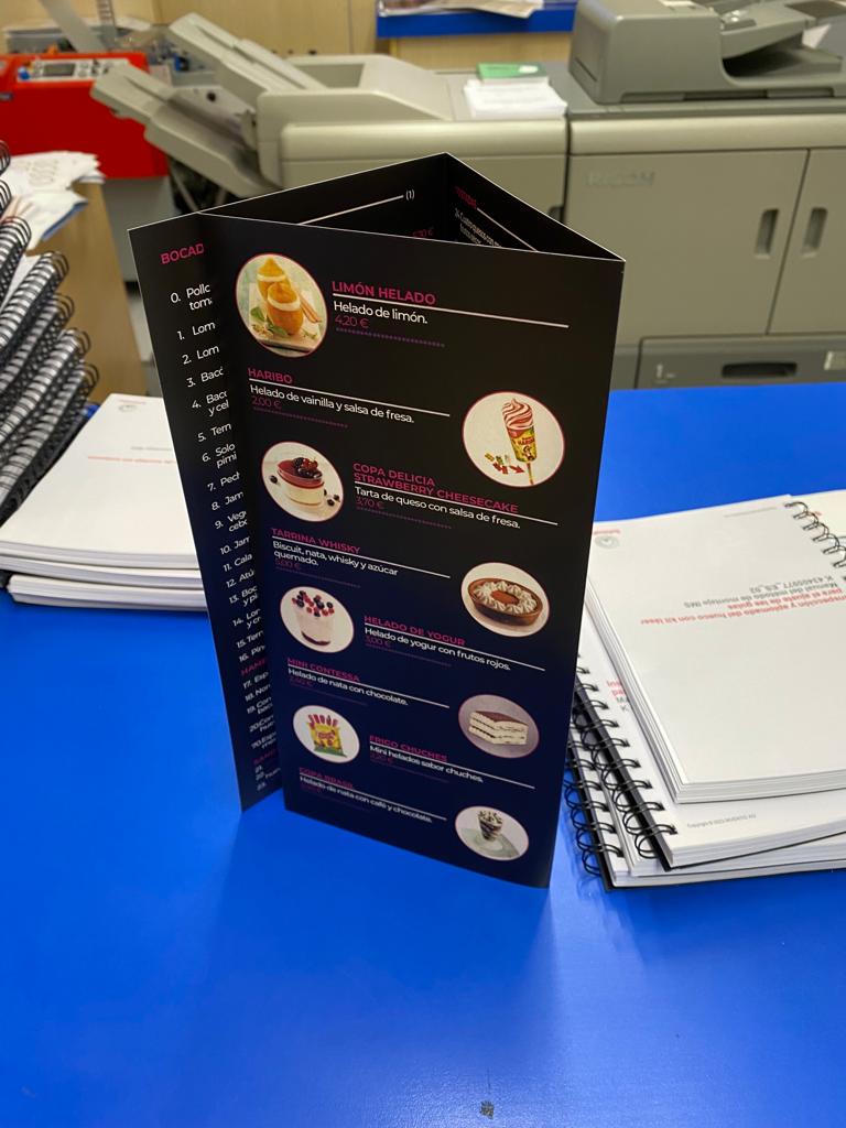 Albaranes y facturas, catálogos, carpetas y folletos publicitarios: flyers, dípticos, trípticos, tarjetas de visita, cartelería grande y pequeño formato.